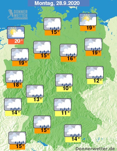 Am Montag bleibt es über der Südosthälfte des Landes meist stark bewölkt und es zeitweise Regen. Im Rest der Republik ist es teils aufgelockert, teils stark bewölkt, dabei sind nur hier und da einzelne Schauer möglich. Zum Großteil bleibt es aber trocken. Die Temperatur steigt auf 10 Grad im Eichsfeld und bis 20 Grad in Wilhelmshaven.