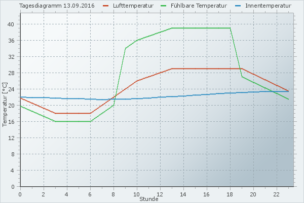 Hitze in Deutschland. Fühlbare Temperaturen teilweise über 40 Grad C, wie hier in Bonn auf unserem Diagramm.