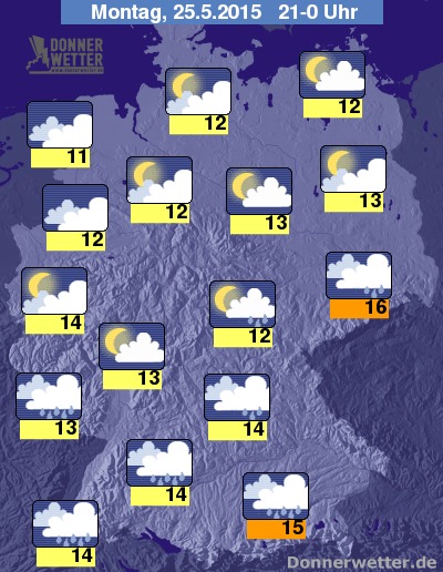 Heute Abend halten sich in Süddeutschland meist dichte Wolken aus denen immer wieder, teils gewittriger Regen fällt. Im Osten fällt bei oft starker Bewölkung gebietsweise Regen. Im übrigen Bundesgebiet ist es teils aufgelockert, teils stark bewölkt und dazu weitgehend trocken. Die Abendtemperatur liegt bei 16 Grad in Dresden und um 11 Grad in Ostfriesland.