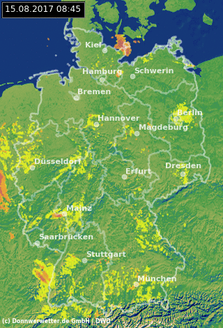Örtlich muss mit teils ergiebigem Starkregen und Hagel und stürmischen Windböen gerechnet werden, bitte beachten Sie die aktuellen Unwetterwarnungen für Ihre Region (unwetter.de).