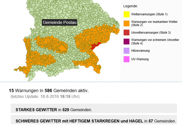 Aktuell bestehen für Bayern Unwetterwarnungen. Einzelne Gewitterzellen ziehen durch.
