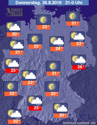 Am späteren Abend können einzelne Schauer noch in der Osthälfte sowie im Schwarzwald fallen, sonst bleibt es bei lockerer Bewölkung oder sternenklarem Himmel meist trocken.