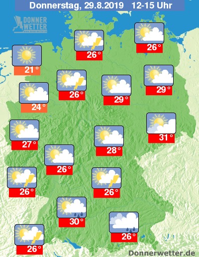 In den kommenden Stunden wechseln sich Sonne und Wolken über weiten Teilen des Landes ab, an den Alpen sowie über dem Erzgebirge sind die Wolken zeitweise auch dichter. Verbreitet muss in den Mittags- und Nachmittagsstunden mit Schauern und Gewittern gerechnet werden, die regional auch unwetterartig ausfallen können. Im Westen Deutschlands ist das Schauerrisiko in den nächsten Stunden nur gering.
