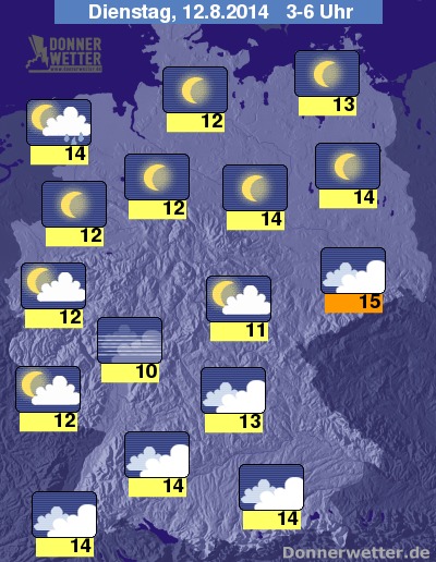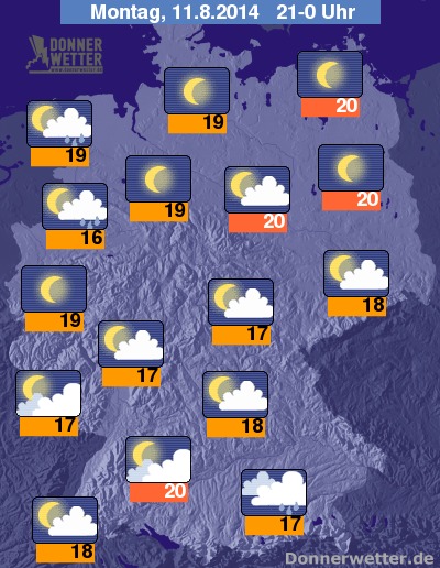 In der Nacht zum Dienstag klart der Himmel vielfach auf, im Süden halten sich allerdings meist dichte Wolken, hier ist ganz vereinzelt etwas Regen möglich, sonst bleibt es mit Ausnahme der Nordseeküstenregion aber trocken. Die Temperaturen sinken auf 15 Grad in Chemnitz und frische 10 Grad im Odenwald.