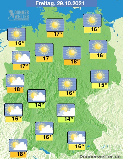 Am Freitag zeigt sicher der Himmel über weiten Landesteilen heiter oder die Sonne scheint von einem wolkenlosen Himmel. Im Süden und Westen Deutschlands können im Tagesverlauf auch mal lockere Wolken durchziehen. Es bleibt trocken.