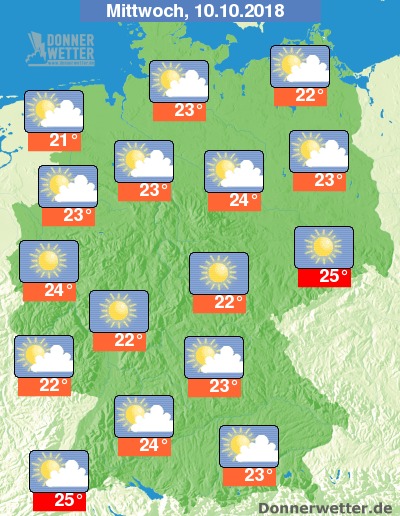 Nach Auflösung teilweise zäher Nebelfelder oder hochnebelartiger Bewölkung, die sich vor allem über der Südhälfte Deutschlands gebildet haben, strahlt abgesehen einiger dünner Schleierwolken wieder verbreitet die Sonne. Bis zum Nachmittag erwärmt sich die Luft dabei auf spätsommertaugliche 20 bis 26 Grad.