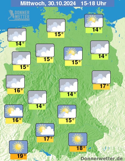 Am Mittwochnachmittag zeigt sich der Himmel über der Nordhälfte stark bewölkt oder bedeckt, an den Küsten sind auch einzelne Auflockerungen möglich. In den übrigen Landesteilen hält sich zum Teil zäher Nebel oder Hochnebel, lokal lockert es aber auch auf. Gebietsweise, vor allem im Bergland, kann sich am Nachmittag auch längere Zeit die Sonne zeigen. Es bleibt trocken.