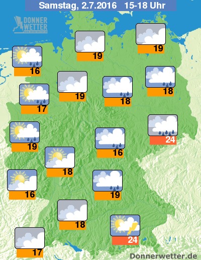 Vielerorts bedeckt zeigt sich der Himmel am Samstagmittag und am frühen Nachmittag, die besten Chancen auf ein paar Sonnenstrahlen bestehen zwischen Mittel- und Niederrhein. Mit Schauern muss vor allem zwischen Elbe und Oder sowie im Südwesten des Landes gerechnet werden, im Südosten sind zudem einzelne Gewitter möglich.