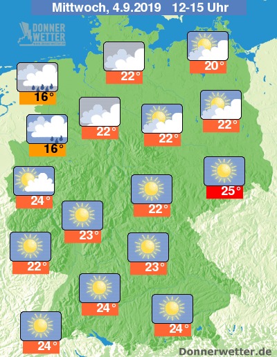 Bei längerem Sonnenschein können die Temperaturen noch etwas ansteigen und erreichen im Laufe des Nachmittags stellenweise spätsommerliche 25 bis 27 Grad.