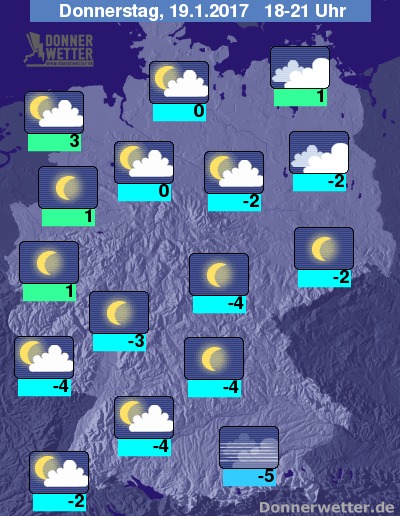 Fast 10 Grad liegen heute zwischen den Tageshöchsttemperaturen im Norden und Süden. Während das Thermometer an der Nordsee bis auf 3 Grad klettert, verharrt es im Süden bei frostigen -5 Grad. Dazu gibt es vor allem in der Westhälfte des Landes viele Stunden strahlenden Sonnenscheins und auch in den restlichen Landesteilen zeigt sich gelegentlich die Sonne. Nass wird es ausschließlich in Ostseenähe.