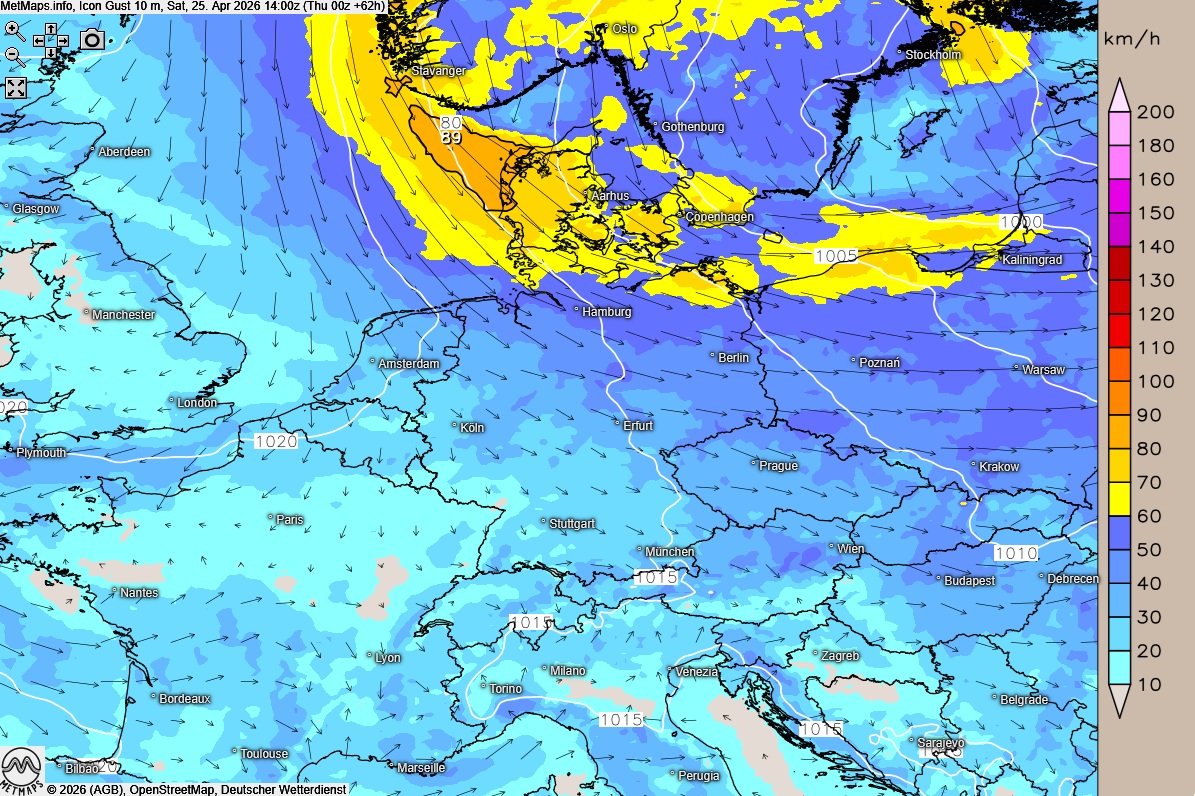 Ein mäßig auflebender Wind aus nördlichen Richtungen sorgt jedoch dafür, dass sich die Luft kühler anfühlt, als es das Thermometer vermuten lässt. Besonders an der Nordsee und in exponierten Hochlagen muss ab dem Nachmittag mit steifen Böen gerechnet werden.