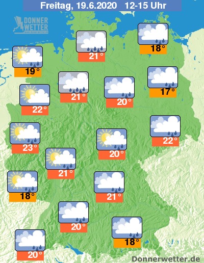 Die Temperaturen liegen deutschlandweit nur im gemäßigten Sommerbereich zwischen 17 und 23 Grad.