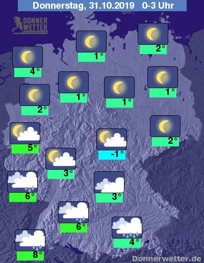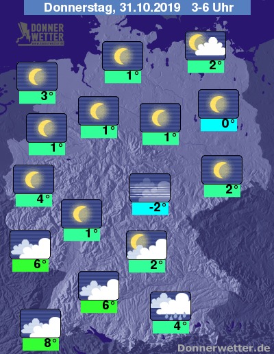 In der Nacht ist der Himmel über der gesamten Nordhälfte sternenklar; in den mittleren Landesteilen klart es im Nachtverlauf häufig auf, vor allem in den Mittelgebirgen kann sich Nebel bilden.