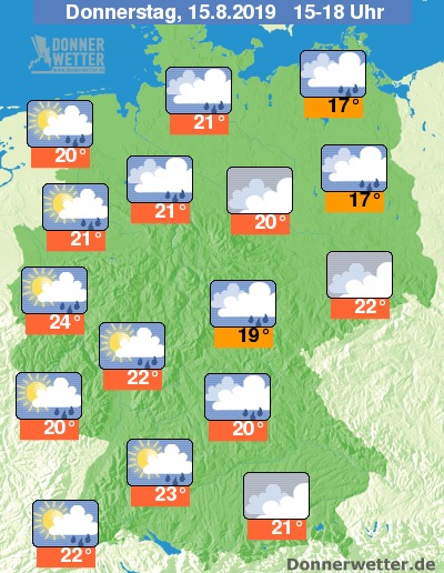 Am frühen Nachmittag dominieren in großen Landesteilen die Wolken und sorgen für Regenfälle oder Schauer, örtlich kann es dabei auch blitzen und donnern. Am längsten freundlich und trocken bleibt es in Sachsen und am Inn.