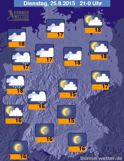 Am Dienstag Abend zeigt sich im größten Teil der Republik ein heiteres Wetter, teils auch mit Sonnenschein an. Besonders in Sachsen ist der Himmel frei von Wolken. Im Umkreis der NRW und an der Ostseeküste sind mit wechelhaften Schauern zu rechnen. Der Süden Deutschlands zeigt sich weiterhin heiter.