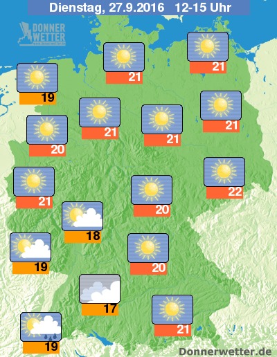 Die Temperaturen erreichen Höchstwerte um 19 Grad C auf der Schwäbischen Alb und um 22 Grad C im Vogtland.