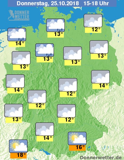 Im Laufe des Nachmittags ändert sich an der Wetter- und Temperaturverteilung in Deutschland wenig. Weiterhin kann es über dem Norden stellenweise nass werden. Die größten Chancen auf Sonne bekommt man vom Breisgau bis ins Alpenvorland. Hier wird es mit 15 bis 18 Grad auch am mildesten, während es sonst eher herbstlich frisch bleibt.