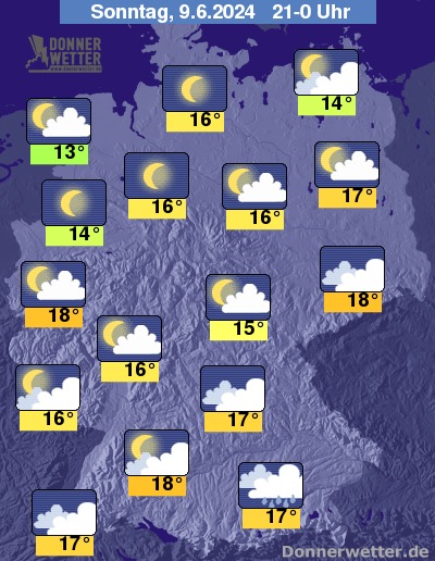 In der Nacht auf Montag fällt im Süden und Südosten teils anhaltender und ergiebiger Regen, auch lokale Gewitter können nicht ausgeschlossen werden. Auch an der Nordseeküste sind einzelne Niederschläge möglich. In den übrigen Landesteilen bleibt es bei geringer Bewölkung oder sternenklarem Himmel trocken.