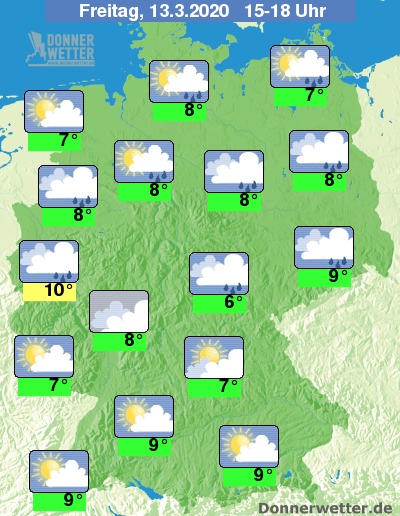 In der Mitte treten bei meist dichter Bewölkung Schauer nur örtlich auf.