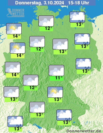 Am Donnerstagnachmittag zeigt sich der Himmel über dem Norden und Westen heiter bis wolkig oder aufgelockert bewölkt und es bleibt trocken. Sonst überwiegt am Nachmittag wechselnde oder starke Bewölkung. Im Osten sowie südlich der Donau fällt dabei zeitweise Regen.