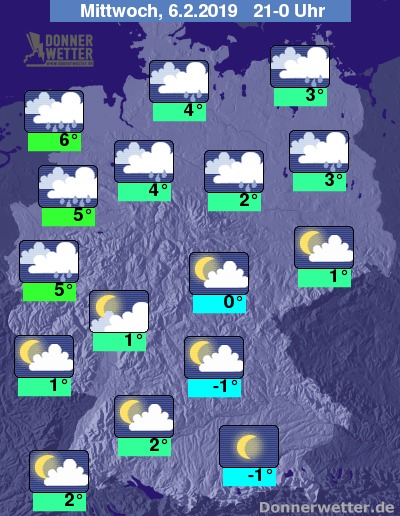 Bis zu den Frühstunden kühlt die Luft unter den dichten Regenwolken nur auf 1 bis 5 Grad ab. Dort wo der Himmel klar bleibt ist mit leichtem Frost von -3 bis 0 Grad zu rechnen. Stellenweise wird es aber noch spürbar kälter.