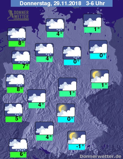 Während der zweiten Nachthälfte fällt im Westen und Norden gelegentlich etwas Regen oder Sprühregen. Vorsicht, im östlichen Niedersachsen kann es dabei zu Glatteisgefahr kommen.