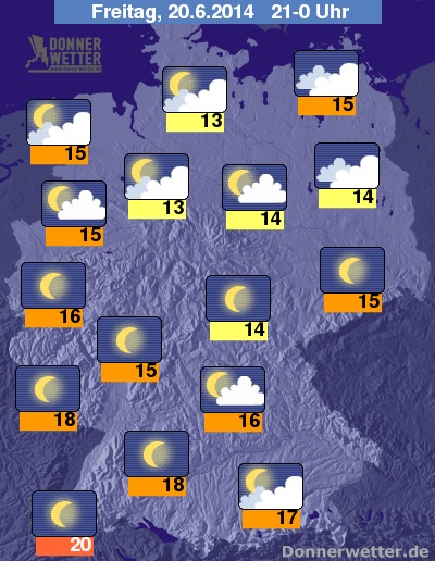 In der Nacht bleibt es überwiegend bei wechselnder Bewölkung, besonders von der Mitte bis in den Süden wird es häufig klar, zum Teil ist es aber auch neblig-trüb, dafür trocken. Die Tiefstwerte liegen bei 12 Grad an Nord- und Ostsee und etwa 5 Grad an der Schwäbischen Alb.