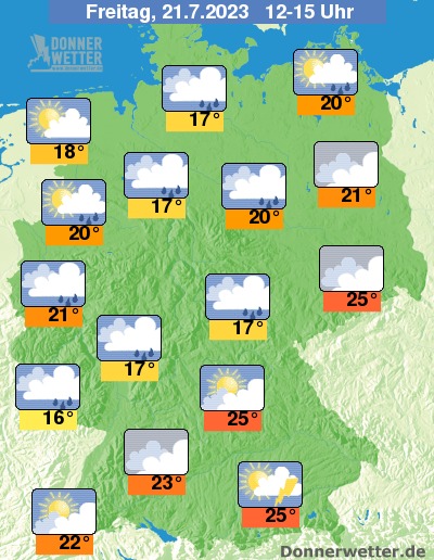 Heute Abend klingen die Schauer über der Südhälfte mit Ausnahme des Alpenrands verbreitet ab und es heitert auch häufig auf. Weiter nach Norden und an den Alpen bleibt es dagegen meist stark bewölkt und es können sich weitere Schauer bilden. Die Temperatur liegt bei 18 Grad in Hamburg und bis 25 Grad in München.