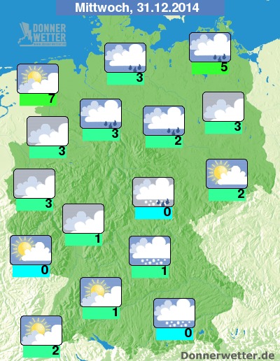 Der heutige Tag zeigt sich wiederum von seiner bewölkten Seite, denn die meisten Regionen werden wohl kaum Sonne sehen. Es fällt dagegen vor allem im Norden, aber auch in der Mitte des Landes hin und wieder Regen oder Schneeregen, nach Süden hin schneit es gelegentlich, häufig ist es aber auch neblig-trüb und trocken. Die besten Chancen auf Sonne gibt es einerseits im Südwesten des Landes, gebietsweise aber auch an der Nordsee um im Erzgebirgsraum. Die Temperatur steigt auf 0 Grad in Oberbayern und bis 7 Grad in Ostfriesland.