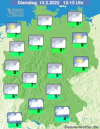 Heute Nachmittag bleibt es überwiegend bedeckt, hier und da zeigen sich auch kurze Auflockerungen. Im Süden fällt gebietsweise Regen, an den Alpen teils Schnee, sonst bleibt es weitgehend trocken. Die Temperatur liegt bei 4 Grad in München und bis 9 Grad in Magdeburg. Im Nordwesten weht ein zunehmend starker und teils stürmischer Wind. An der Nordsee herrscht teils Sturm.