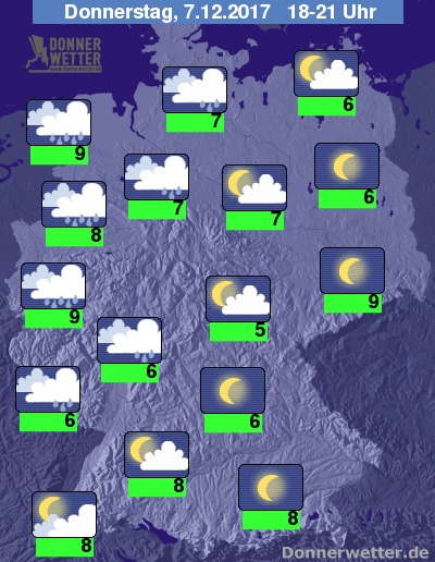 Am Abend breiten sich die Schauer von Nordwesten her weiter aus und auch am Mittel- und Niederrhein setzt langsam Regen ein. Zwischen Ostsee und Allgäu ist der Himmel hingegen stellenweise sogar wolkenlos und die Nacht beginnt sternenklar.