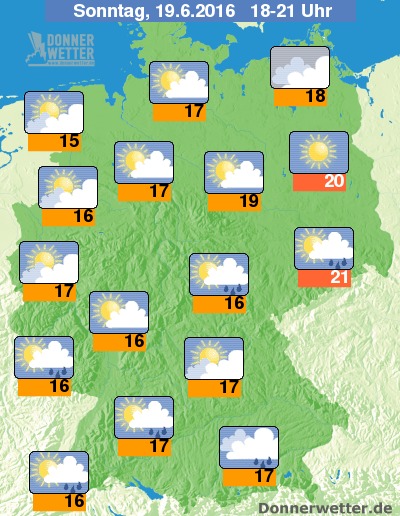 Am heutigen Abend ziehen über Süddeutschland und auch über Thüringen und Sachsen noch teils dichte Wolken hinweg, die hier noch für mögliche Schauer, selten auch einzelne Gewitter sorgen können. Im übrigen Bundesgebiet ist es hingegen verbreitet heiter bis sonnig, gebietsweise auch aufgelockert bewölkt, jedoch trocken. Die Temperatur liegt bei 15 in Ostfriesland und um 21 Grad in Hoyerswerda.