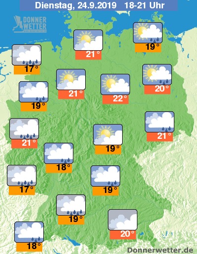 Am Abend fällt im Süden und Westen gebietsweise Regen, mal mehr, mal weniger. Im Nordosten können örtliche Schauer auftreten. In den übrigen Bereichen bleibt es trocken und wer Glück hat kann die untergehende Sonne noch beobachten.