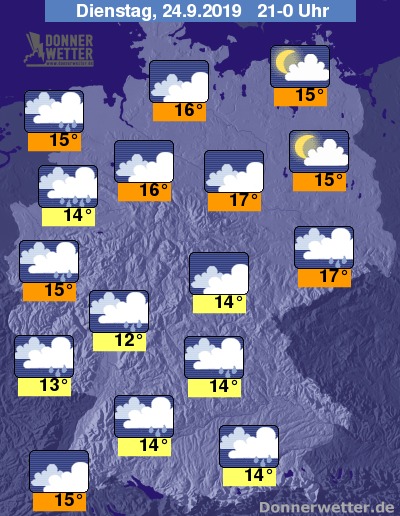 Bis Mitternacht klingen die Schauer im Nordosten allmählich ab und die Sterne kommen zum Vorschein. Der Regen im Süden breitet sich weiter nach Bayern aus. Sonst dominieren die Wolken.