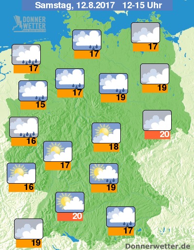 Heute Nachmittag bleibt es über der Nordhälfte des Landes weitgehend bedeckt und oft regnerisch. Weiter nach Süden hin zieht ebenfalls oft starke, teils aber auch aufgelockerte Bewölkung durch, hier bilden sich einzelne Schauer. Die Temperatur liegt bei 15 Grad im Münsterland und bis 20 Grad in Dresden.