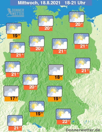 Heute Abend klingen letzte vereinzelte Schauer rasch ab und es lockert verbreitet auf. Vor allem im Süden wird es auch oft heiter. Die Temperatur liegt noch bei 17 Grad im Saargau bis 22 Grad in Berchtesgaden.