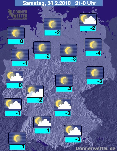 Die Temperaturen erreichen zum Abend Werte um -1 bis 4 Grad C, in der ersten Nachthälfte um -4 bis 0 Grad C.