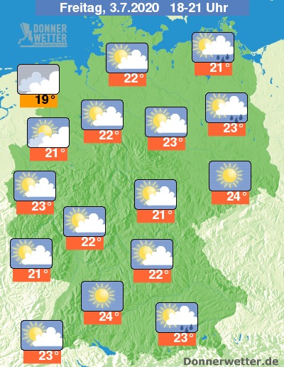 Am Abend werden die Schauer im Norden, sowie im Alpenvorland seltener. In den anderen Gebieten spendet die allmählich untergehende Sonne im Wechseln mit lockeren Wolken noch genügend Helligkeit und wohltuende Wärme.