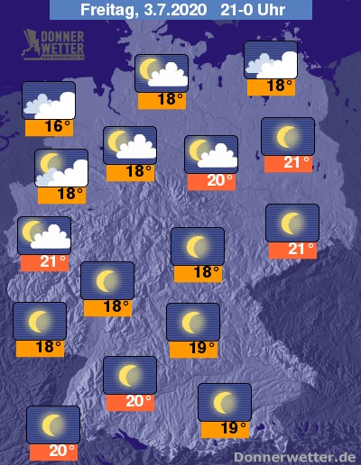 Der Südwestwind frischt in der Nacht im Nordseeumfeld weiter auf, sonst weht er meist nur schwach bis mäßig und schläft im Süden zum Teil ein.