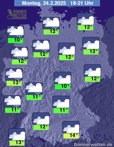 In der Nacht zum Dienstag breiten sich die kompakten Wolken und der zeitweilige Regen auf die Südosthälfte Deutschland aus. Dagegen lockert es im weiteren Nachtverlauf im im Norden und Westen meist etwas auf und es bleibt hier schon wieder trocken. Die Temperatur sinkt auf 9 Grad in Freiburg und 6 Grad in Hamburg.