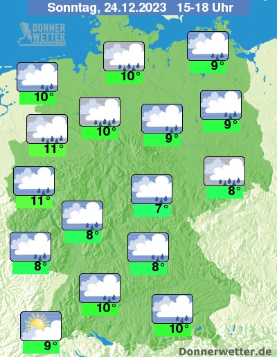 Die Temperaturen erreichen am Nachmittag Höchstwerte um 7 bis 11 Grad, in der Nacht kaum zurückgehend auf 10 bis 6 Grad.
