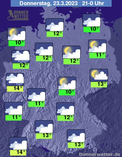 Die Temperaturen gehen bis Mitternacht auf Werte um 14 bis 10 Grad zurück.