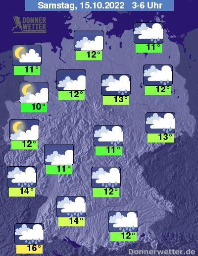 Am Samstag ziehen überwiegend dichte Wolken durch, dabei bilden sich gebietsweise Schauer. Im Norden und Osten ist es aber oft auch locker bewölkt, hier bleibt es zumeist trocken. Die Temperatur erreicht 15 Grad in Cuxhaven und bis 20 Grad in München. An der Nordsee weht ein oft stürmischer Wind.