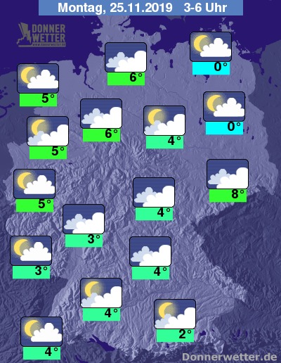 In der Nacht zum Montag ist es bevorzugt westlich des Rheins, im Süden und im Nordosten locker bis aufgelockert, sonst dagegen mehrheitlich dicht bewölkt, dazu bleibt es trocken. Die Temperatur sinkt auf 8 Grad in Dresden und bis 0 Grad an der Müritz.