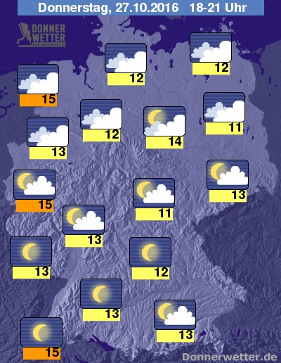 Am Abend klart es auch in der Mitte des Landes zunehmend auf. Die dichten Wolken ziehen sich währenddessen in Richtung der Küsten zurück. Um 18 Uhr liegen die Höchstwerte entlang des Rheins nach wie vor bei milden 15 Grad. Mit maximal 11 Grad geht es zwischen Lausitz und Thüringer Bergland etwas kühler zu.