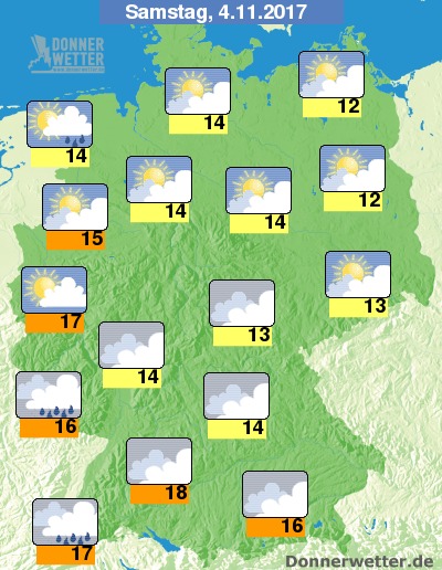 Am Samstag ist es nach Norden hin meist wechselnd bis aufgelockert, sonst schon meist stark bewölkt, dazu ist es zunächst trocken. Gegen Abend ziehen in den westlichsten Landesteilen kompakte Wolken und gebietsweise Regen auf. Die Temperatur steigt auf 12 Grad an der Ostsee und bis 18 Grad in Stuttgart.