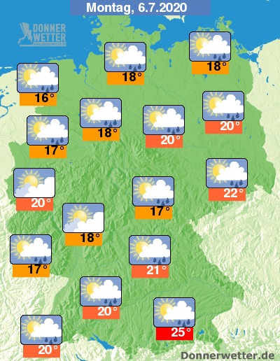 Höchstwerte am Montag um 16 bis 25 Grad.