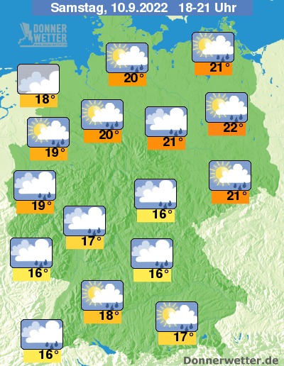 Heute Abend können sich weiterhin vielerorts Schauer und vereinzelt auch Gewitter bilden. Besonders im Norden und Osten heitert der Himmel jedoch auch zwischenzeitlich auf. Die Temperatur liegt bei 15 Grad in Nürnberg und etwa 22 Grad in Berlin.