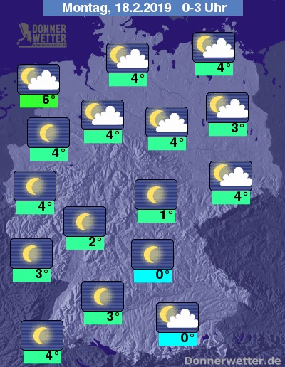 In der Nacht zeigt sich der Himmel entlang der Oder und zunächst auch noch nördlich des Weserberglands locker bewölkt. Im Norden klart der Himmel im weiteren Verlauf dann verbreitet auf. In den übrigen Landesteilen funkeln die Sterne die gesamte Nacht von einem wolkenlosen Himmel.