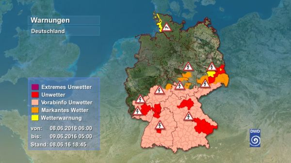 Aktuell bestehen noch Warnungen. Nachts entspannt sich die Lage:
